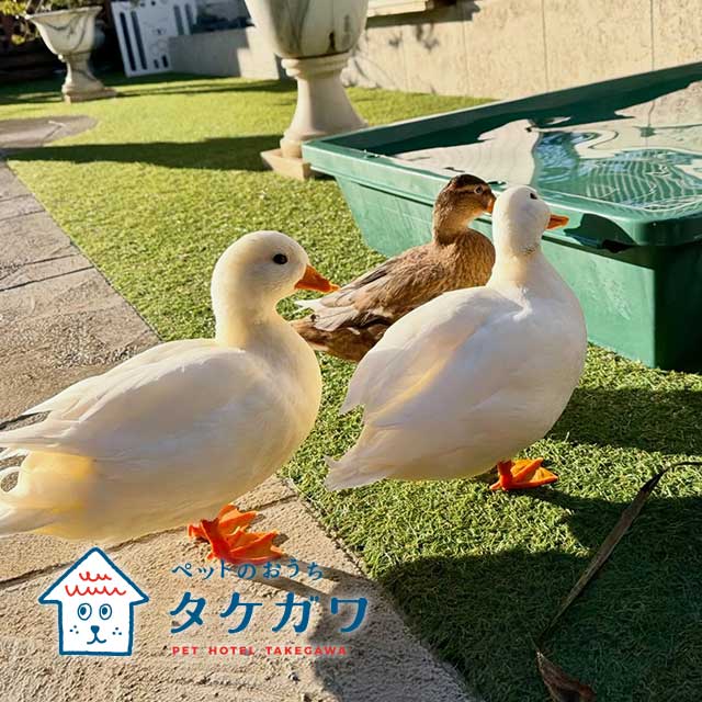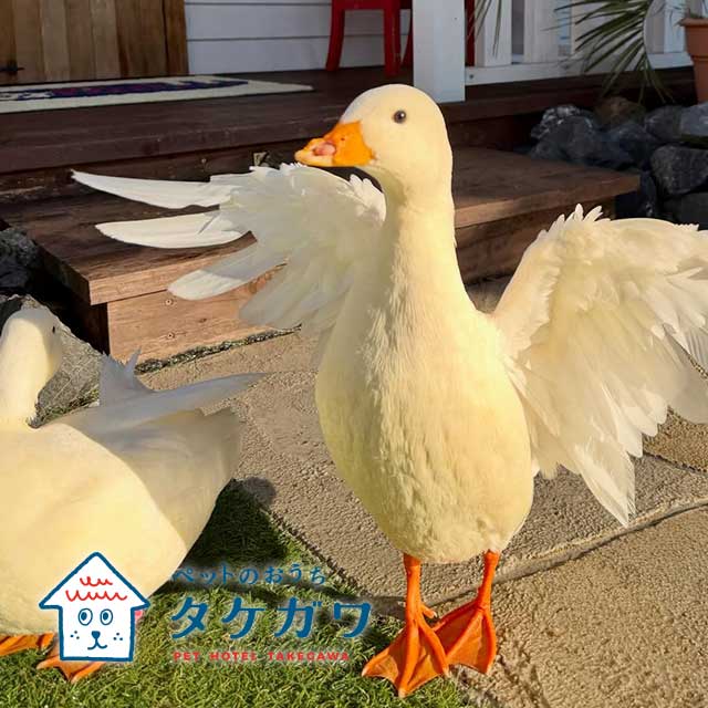 お問い合わせから予約まで親切な対応をして下さり特殊なペットにも関わらず快く引き受けて下さいました♪今回、他に預かって頂く予定の老犬がいましたが直前に虹の橋を渡ってしまいましたのでキャンセルさせて頂いたのですがアヒルをお迎えに行った時に寝たきり?の老犬がスタッフさんの目の届くところで寝てました!!ここなら老犬も安心して預けられるなぁと思いました♪又、機会があれば是非お願いしたいです♪